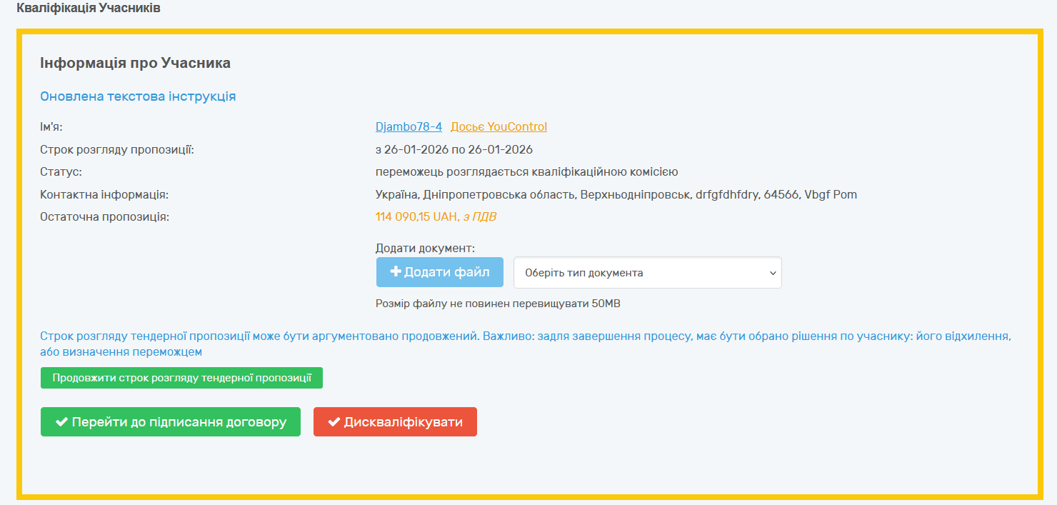 Визначення переможця тепер відбувається всього за декілька кліків: натискаємо кнопку «Перейти до підписання договору», після чого система автоматично відображає вікно для накладення КЕП, і готово.