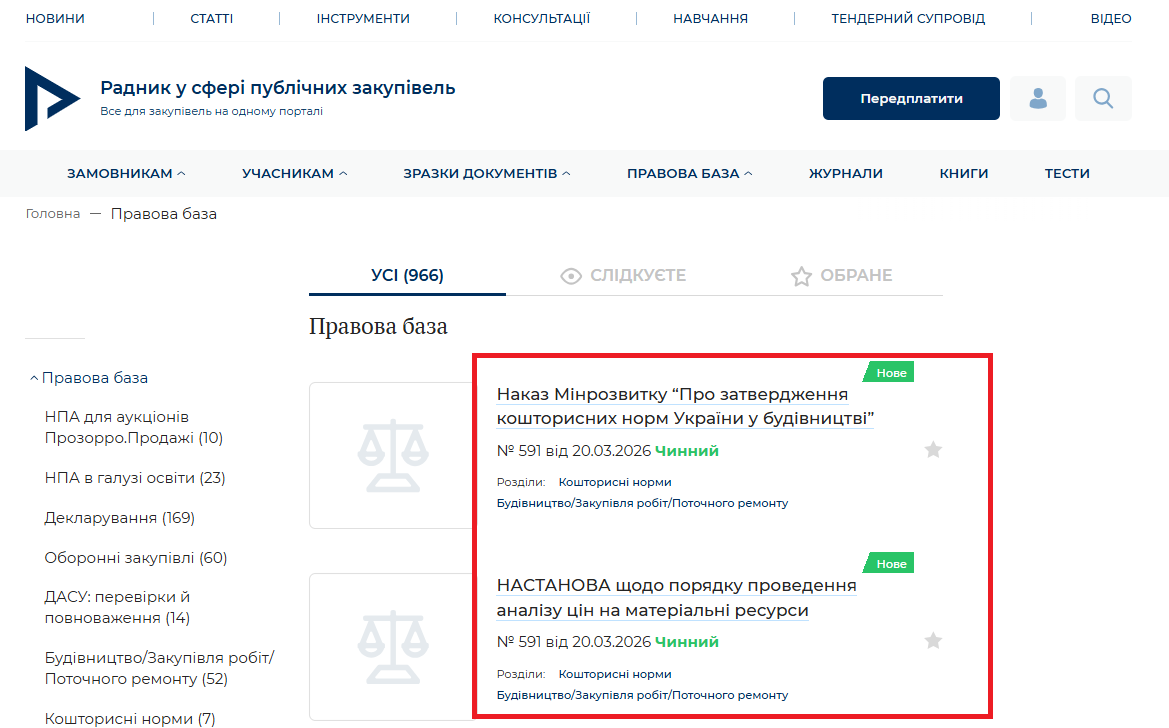Знайти їх можна у розділах Кошторисні норми та Будівництво/Закупівля робіт/Поточного ремонту Правової бази порталу:
