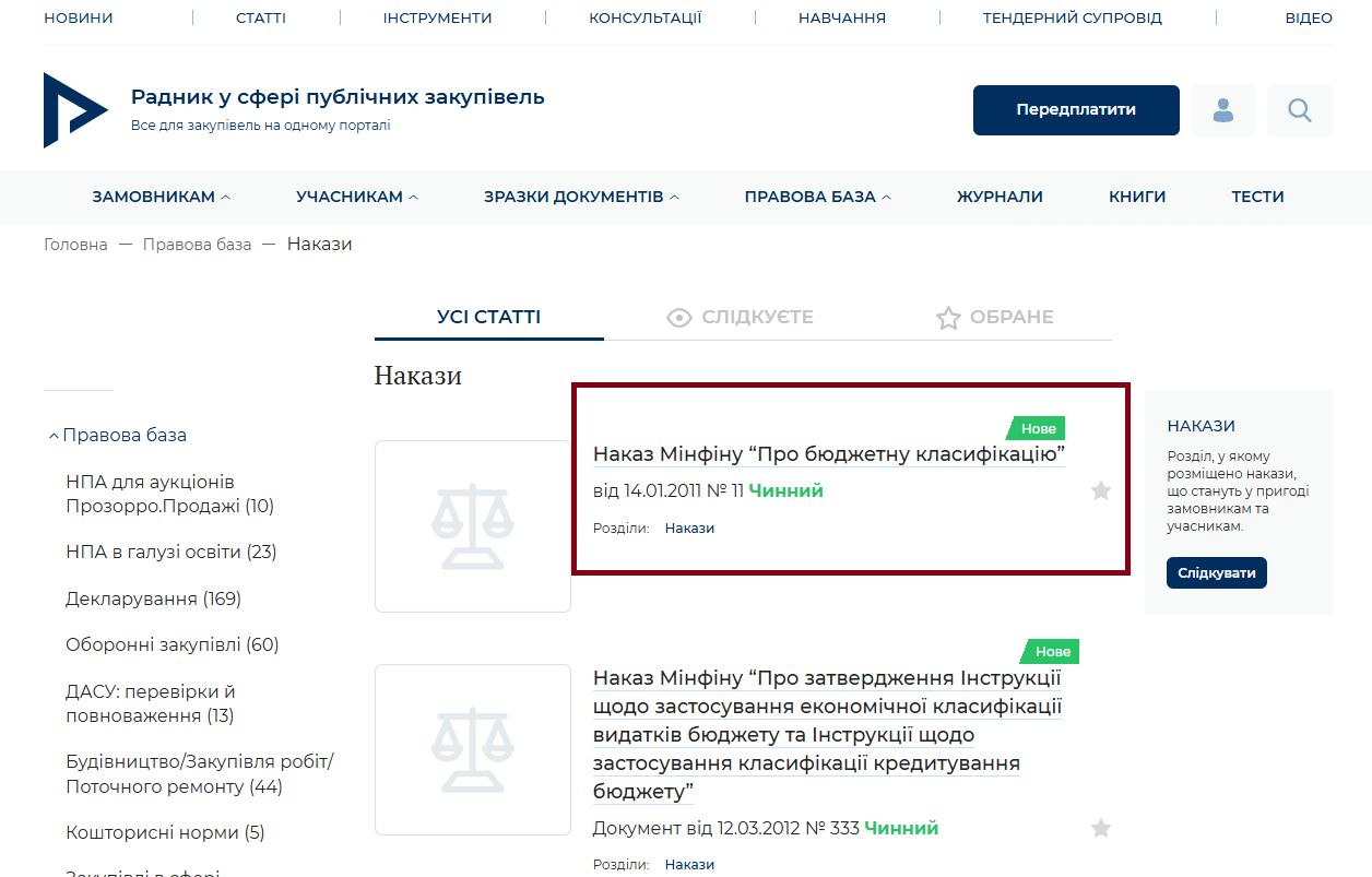 Вітаємо! Повідомляємо, що у Правовій базі порталу актуалізовано наказ Мінфіну “Про бюджетну класифікацію” (розділ Накази):