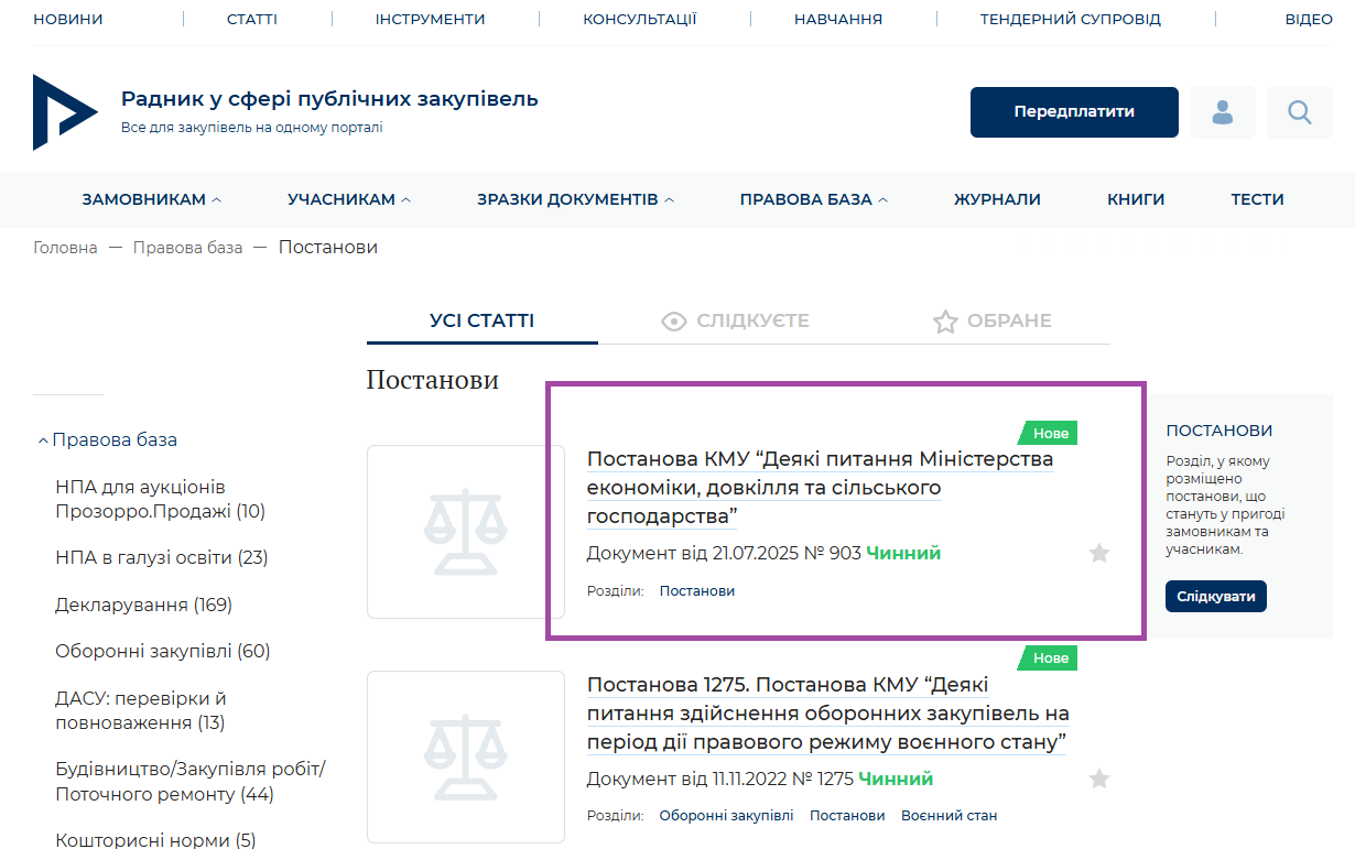 Вітаємо! Інформуємо, що на порталі актуалізовано постанову КМУ “Деякі питання Міністерства економіки, довкілля та сільського господарства” (розділ Постанови Правової бази):