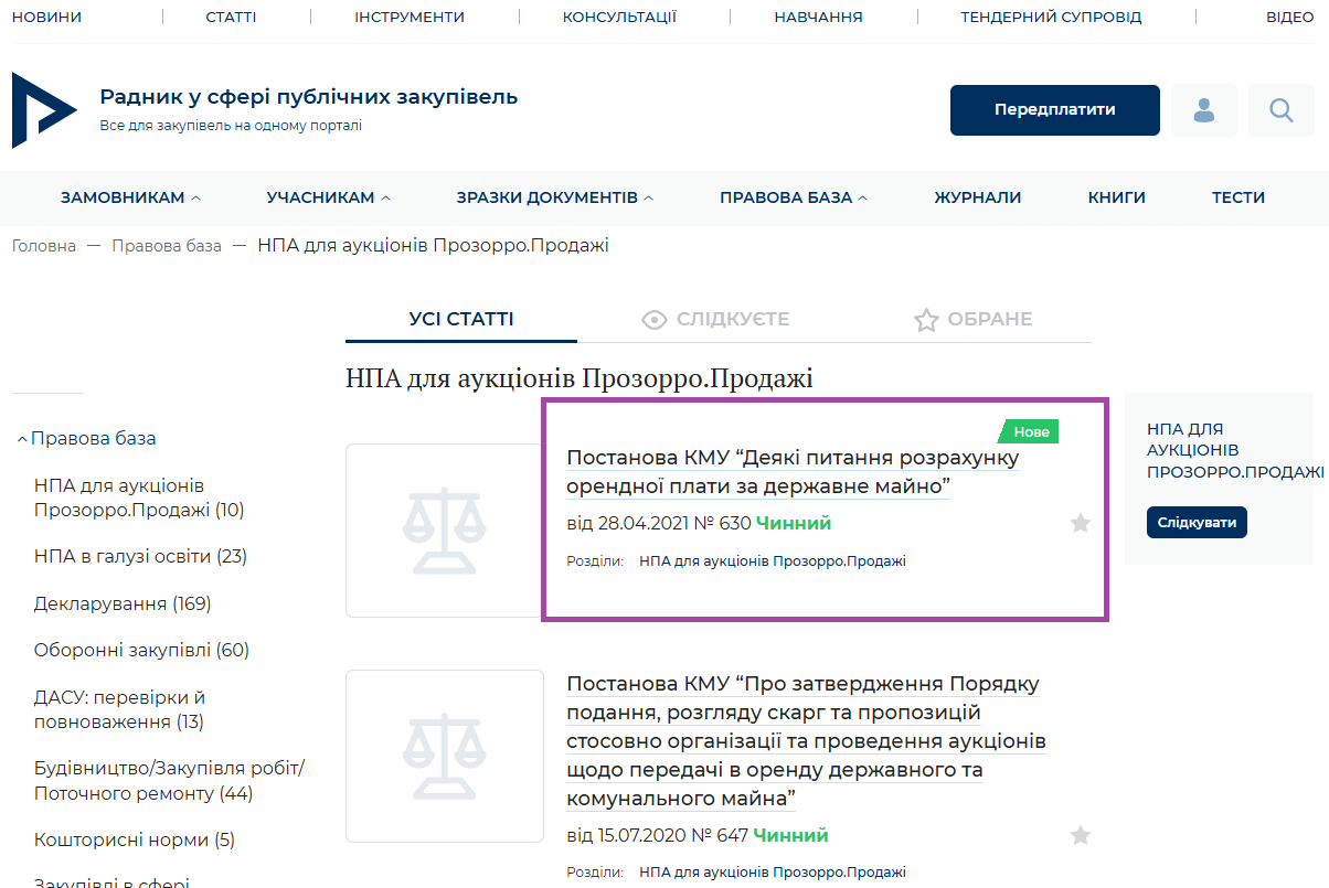 Вітаємо! Інформуємо, що На порталі оновлено постанову КМУ “Деякі питання розрахунку орендної плати за державне майно” (розділ НПА для аукціонів Прозорро.Продажі):