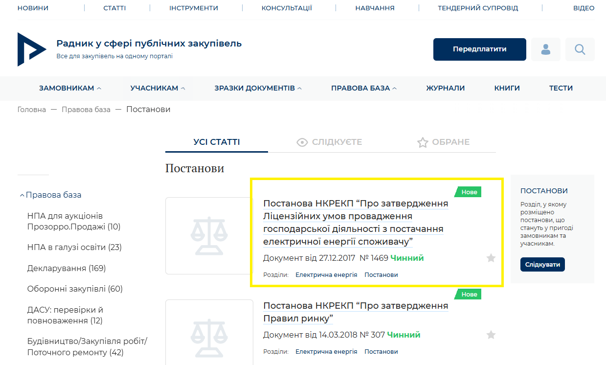 Вітаємо! Інформуємо, що на порталі оновлено постанову НКРЕКП “Про затвердження Ліцензійних умов провадження господарської діяльності з постачання електричної енергії споживачу” (розділ Постанови Правової бази):