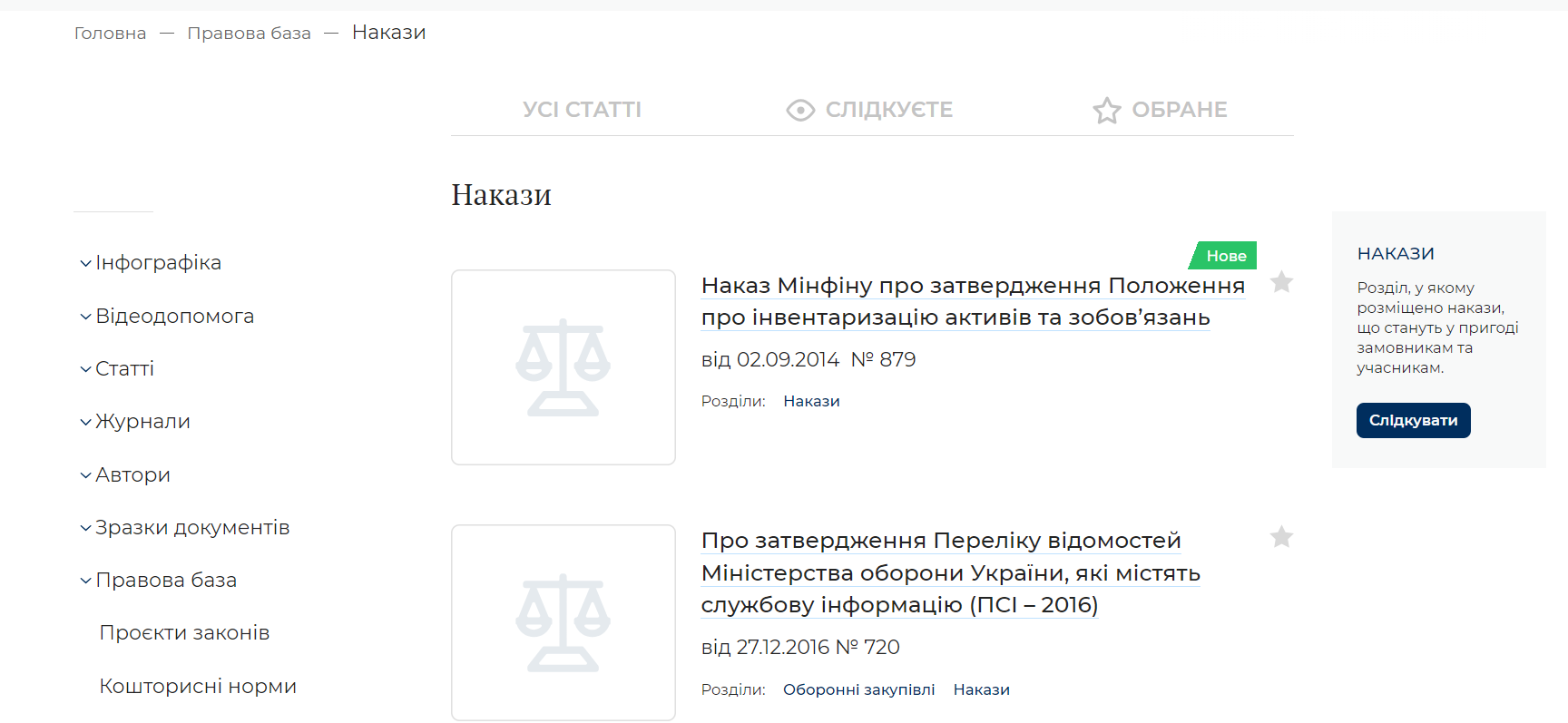 - у розділ Накази – Наказ Мінфіну про затвердження Положення про інвентаризацію активів та зобов’язань;