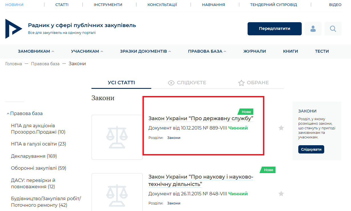 Вітаємо! Інформуємо, що на порталі оновлено Закон України “Про державну службу” (розділ Закони Правової бази):