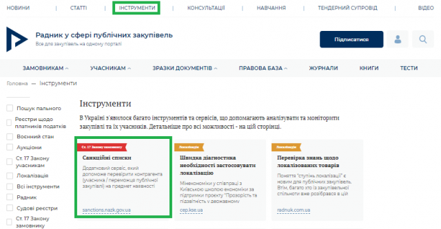 На порталі з’явився новий інструмент “Санкційні списки“за допомогою якого можна легко перевірити контрагента * учасника публічних закупівель або переможця) на предмет наявності його у санкційних списках.
