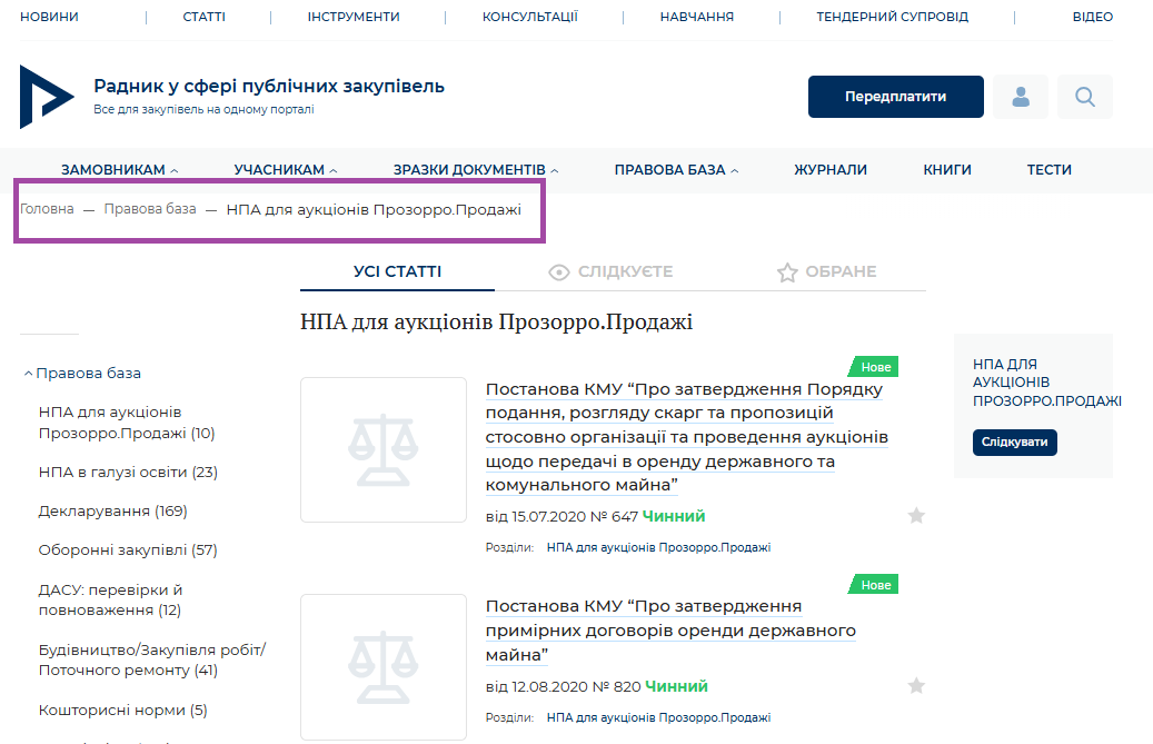 Новий розділ Правової бази — НПА для аукціонів Прозорро.Продажі