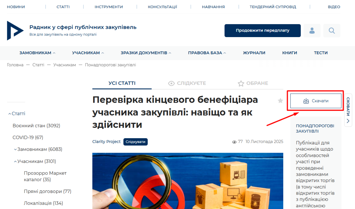 Відкрийте необхідну статтю та натисніть «Скачати» праворуч від назви статті.