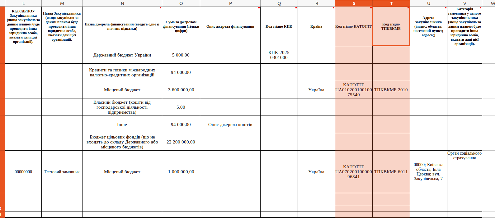 А для місцевого — «Код згідно КАТОТТГ» та «Код згідно ТПКВКМБ».