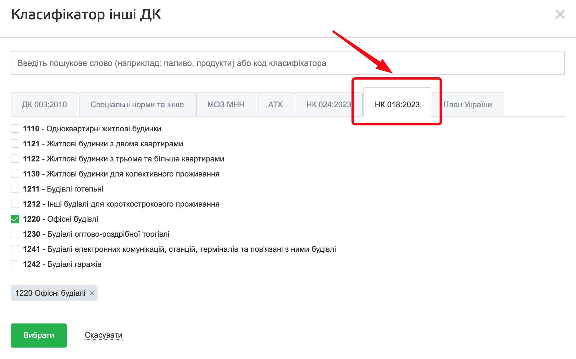Далі вибрати вкладку «НК 018:2023» та поставити відповідний прапорець.