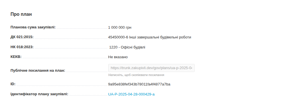 Код НК 018:2023 відобразиться поруч з ДК 021:2015 у блоці «Про план».