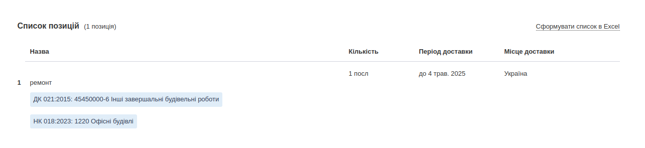 Під час публікації закупівлі ситуація аналогічна. До кожної номенклатурної позиції замовник має технічну можливість зазначити код ДК 021:2015 та НК 018:2023.
