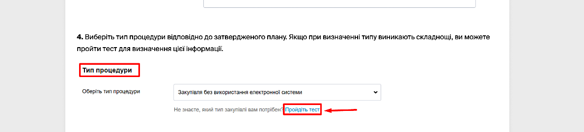 На прикладі Zakupivli.Pro цей вибір здійснюється зі звичайного випадного списку: «Оберіть тип закупівлі: звіт, відкриті торги з особливостями тощо».