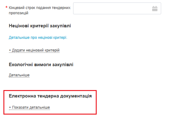 Ці критерії розміщені в блоці «Електронна тендерна документація».