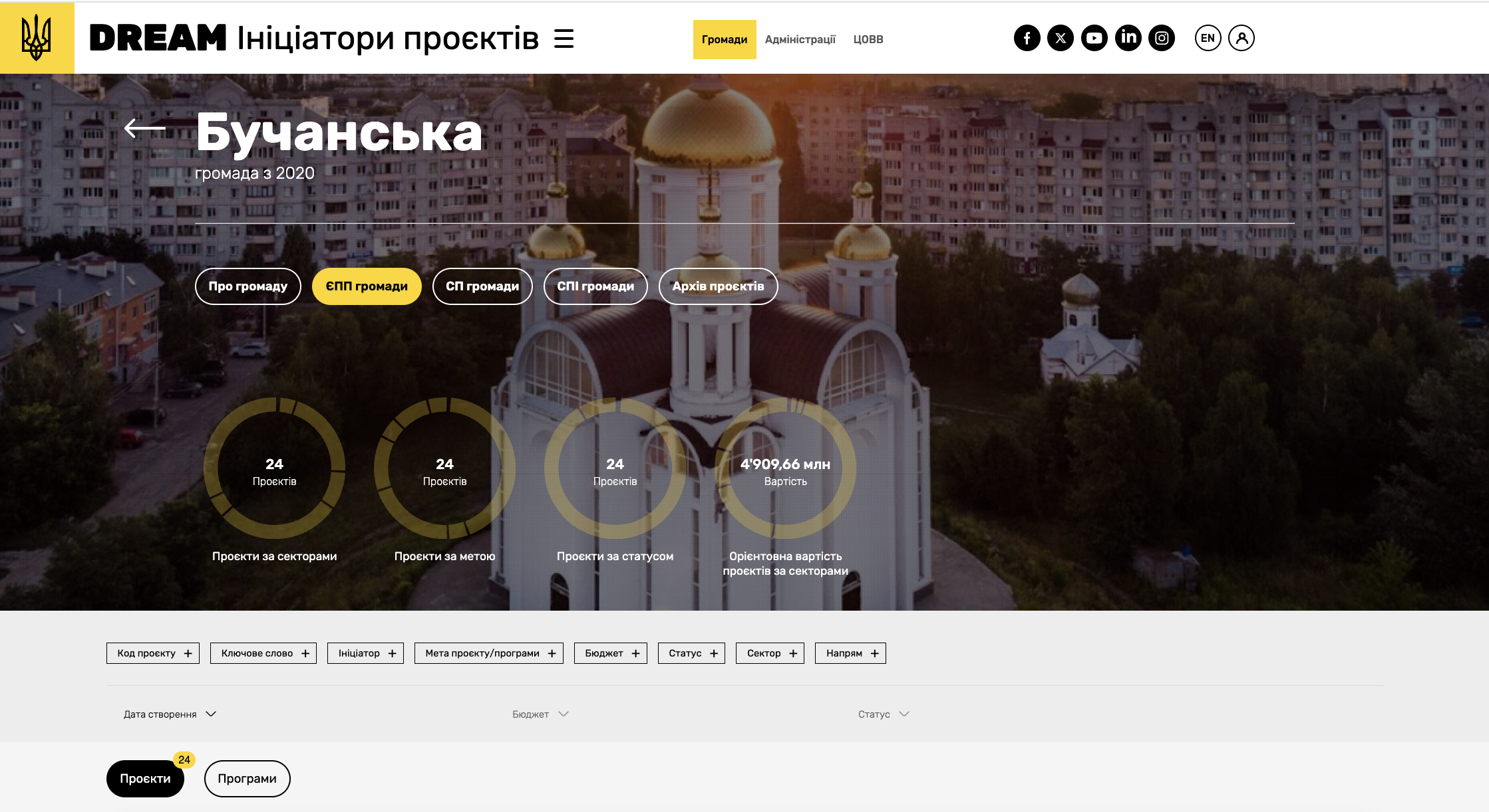 Відображення ЄПП на публічному порталі DREAM на прикладі Бучанської громади Київської області