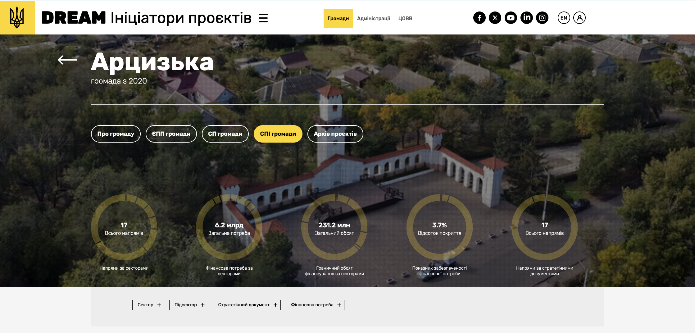 Відображення СПІ на публічному порталі DREAM на прикладі Арцизької громади Одеської області