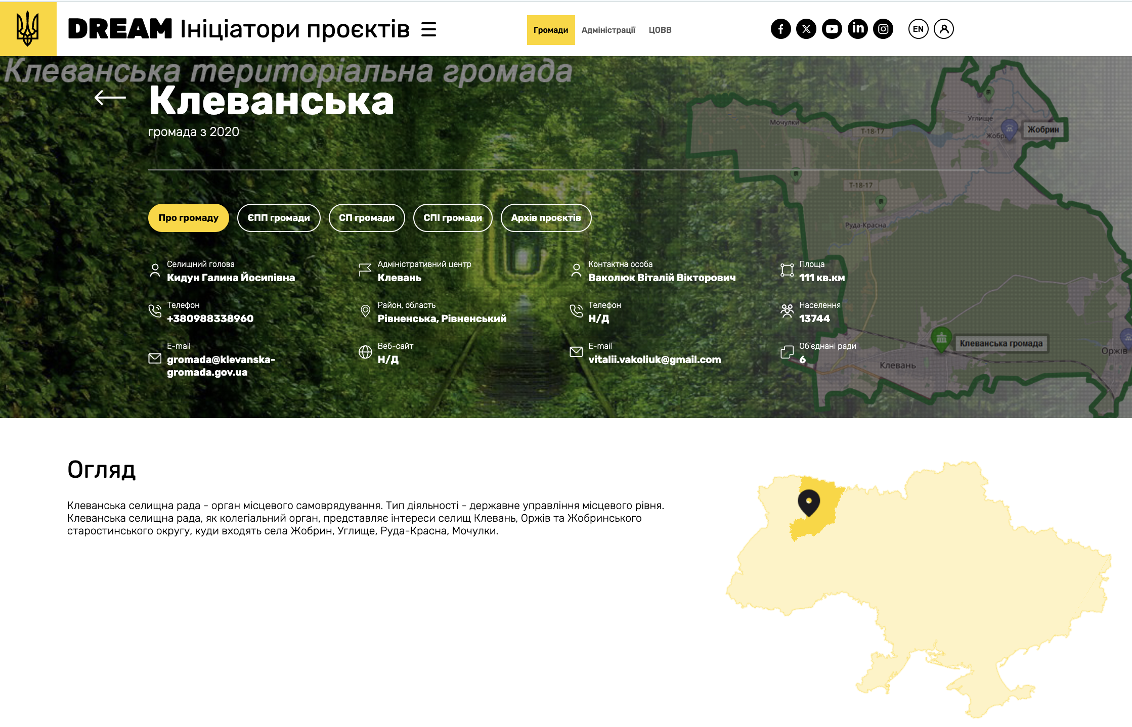 Відображення інвестиційного профілю громади на публічному порталі DREAM на прикладі Клеванської громади Рівненської області
