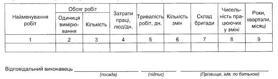 б) трудового та матеріально-технічного забезпечення виконання запланованих робіт;