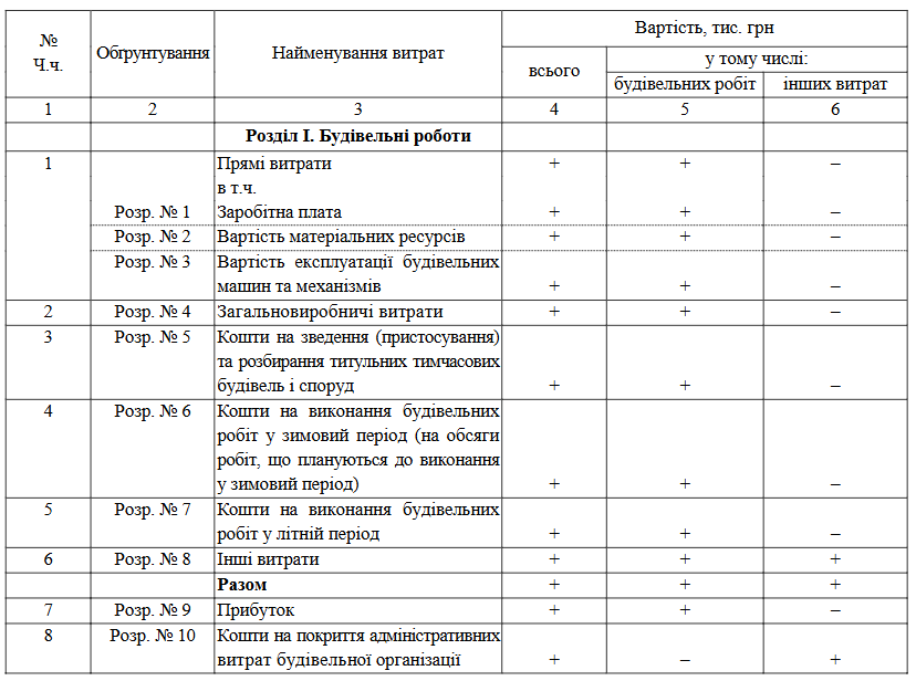 будівельних робіт та витрат