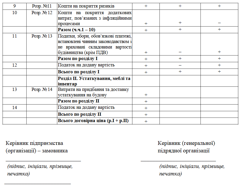 3.2. Кошторисна вартість об’єкта будівництва складається з будівельних робіт, вартості устаткування, що монтується чи не монтується, меблів, інвентарю та інших витрат.