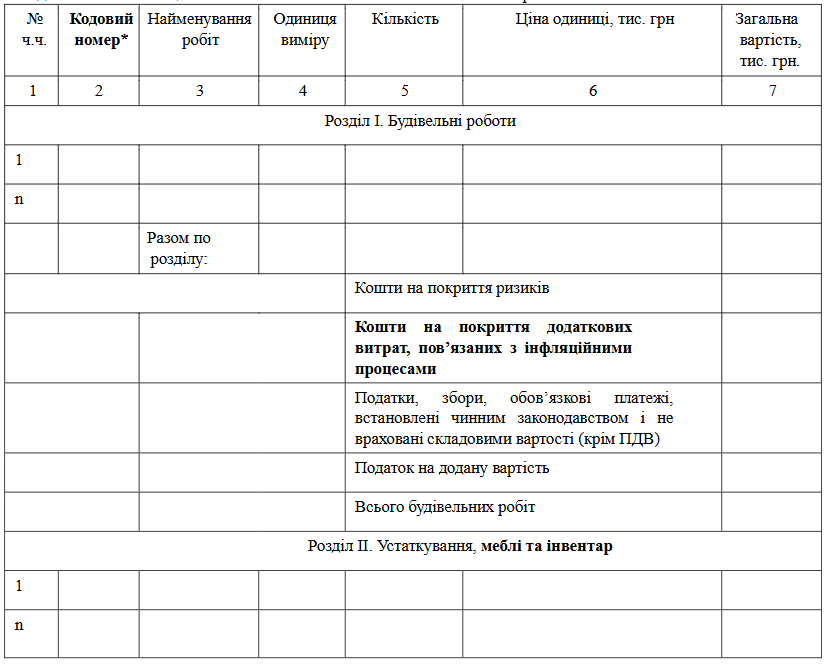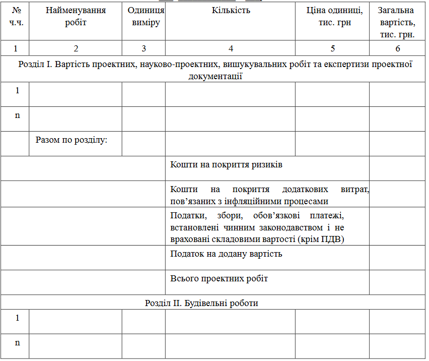Загальні положення зі складання інвесторської кошторисної документації