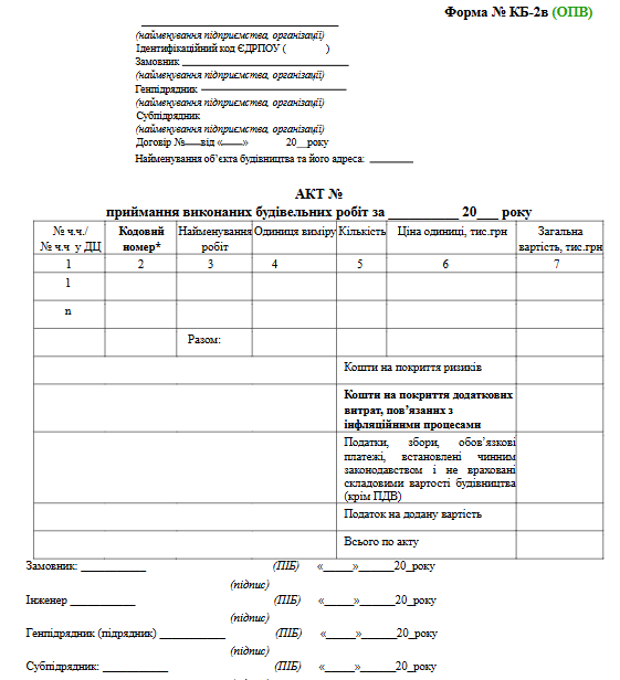 «Акт здавання-приймання виконаних будівельних робіт»