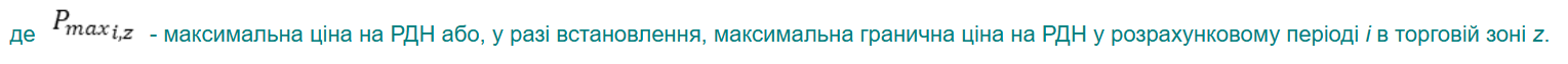 гранична ціна продажу електричної енергії на РДН та ВДР (далі – гранична ціна) – ціна, що розрахована згідно з цими Правилами, що може бути запропонована учасником РДН/ВДР у заявці для продажу на РДН та ВДР у відповідний період доби;