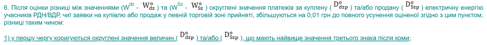 4. Усі значення платежів учасників РДН/ВДР за куплену та продану електричну енергію у відповідній торговій зоні, розраховані згідно з розділом IV Правил РДН/ВДР, повинні бути округлені в меншу сторону до двох знаків після коми.