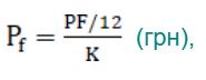 де PF – річний платіж за послуги з підтримки (обслуговування) та надання права на користування програмним забезпеченням ОР, грн;