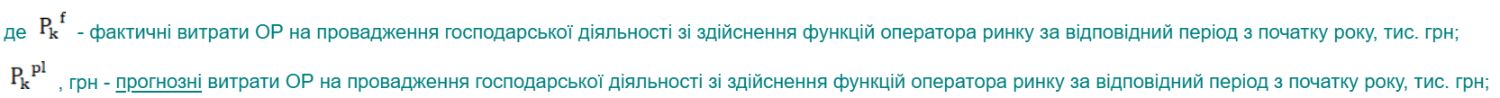 де Pk – річний прогнозний розмір операційних витрат на провадження господарської діяльності зі здійснення функцій оператора ринку, тис. грн, що розраховується за формулою