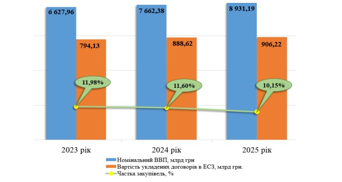 закупівель (906,22 млрд грн) склав 10,15% ВВП.