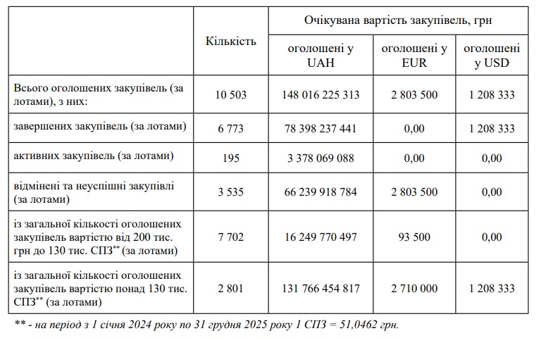у сфері закупівель за 2025 рік