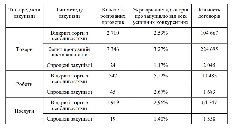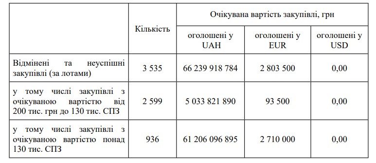 відміни процедур через відсутність пропозицій, а також потреба у подальшому