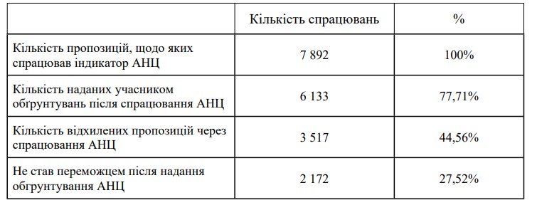 механізму оскарження для захисту прав учасників. Одночасно АМКУ активно забезпечував контроль за антиконкурентними узгодженими діями, прийнявши 655