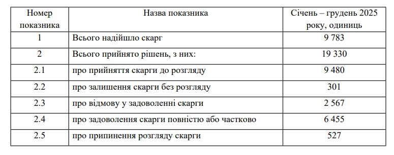 У 2025 році до АМКУ надійшло 9 783 скарги (до розгляду прийнято 9 480), з