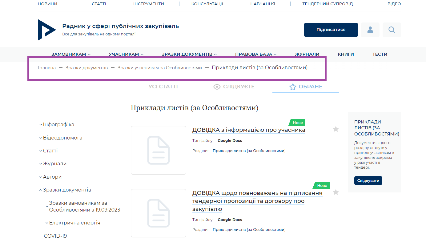 Знайти їх ви можете у розділі “Зразки документів” — “Зразки учасникам за Особливостями” — “Приклади листів (за Особливостями)”: