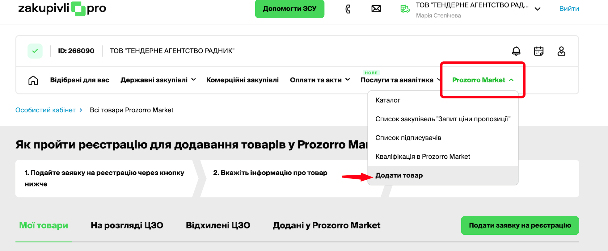 Для того щоб продавати в електронному каталозі Прозорро Маркет, потрібно до нього приєднатися. Для цього вам треба пройти процедуру кваліфікації. Якщо коротко, то підготувати деякі документи й завантажити їх у систему через особистий кабінет постачальника на одному з авторизованих майданчиків Prozorro, наприклад Zakupivli.Pro.