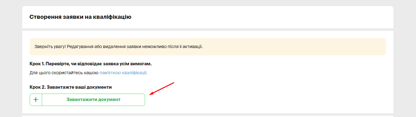 8. Натисніть «Завантажити документ» і додайте всі необхідні документи, що були встановлені у кваліфікаційних вимогах.