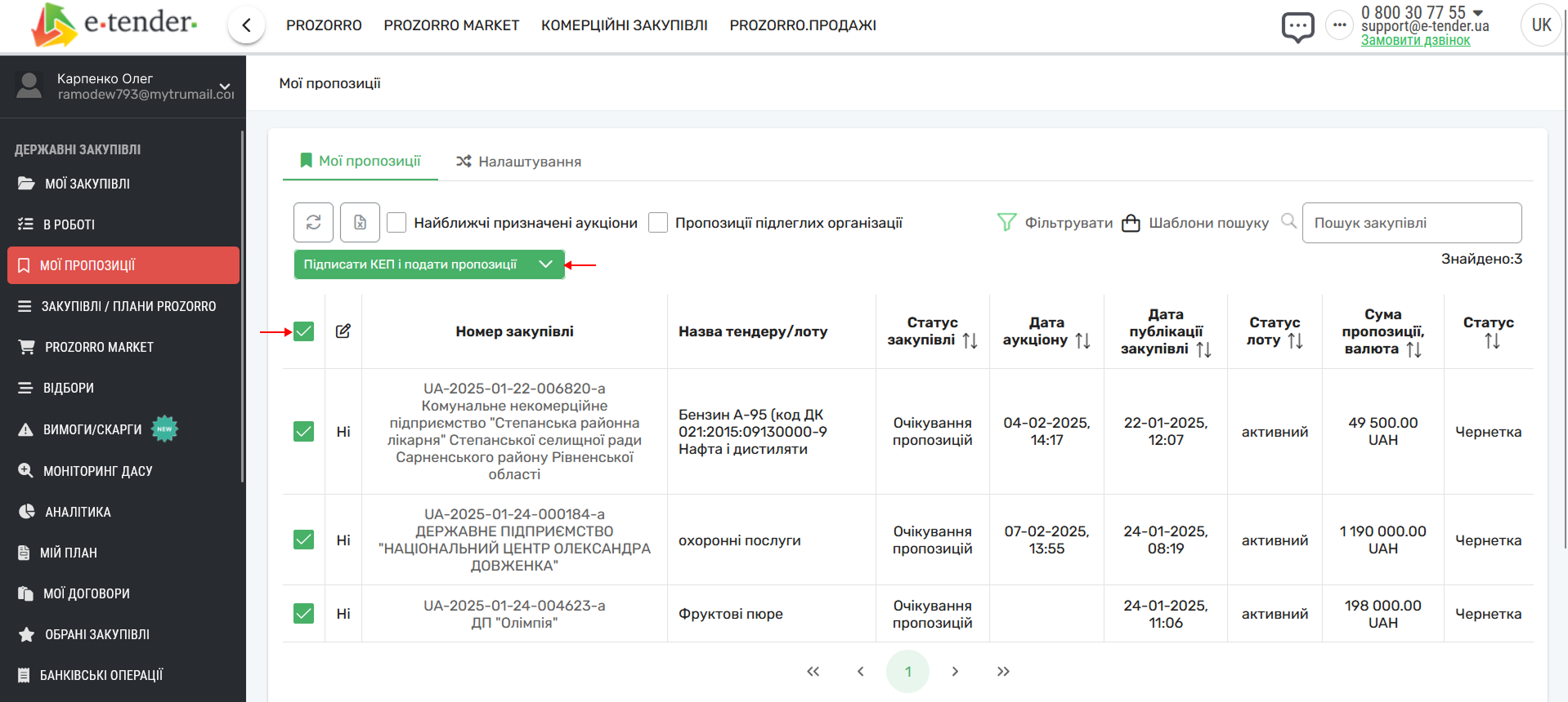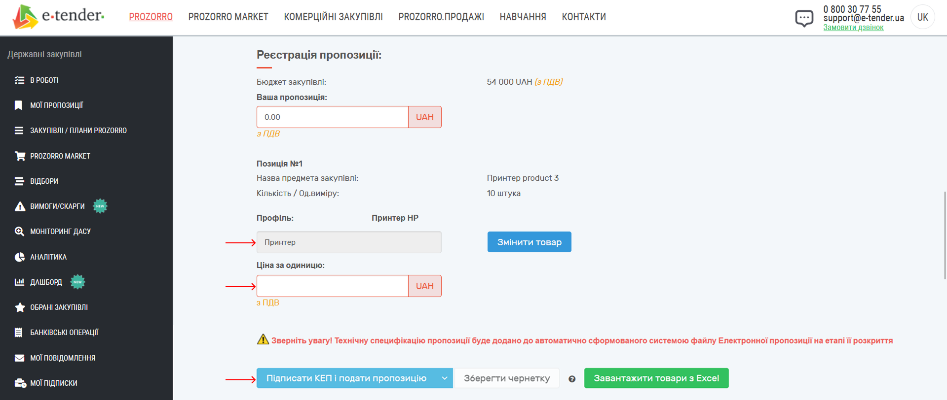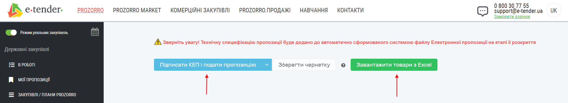 3. Завантажте заповнений файл на майданчик, перевірте дані, підпишіть і подайте пропозицію (Рис. 4).