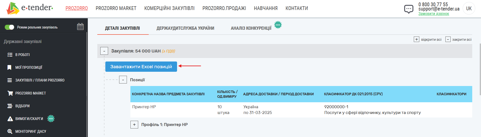 1. Завантажте Excel позицій (Рис. 2).