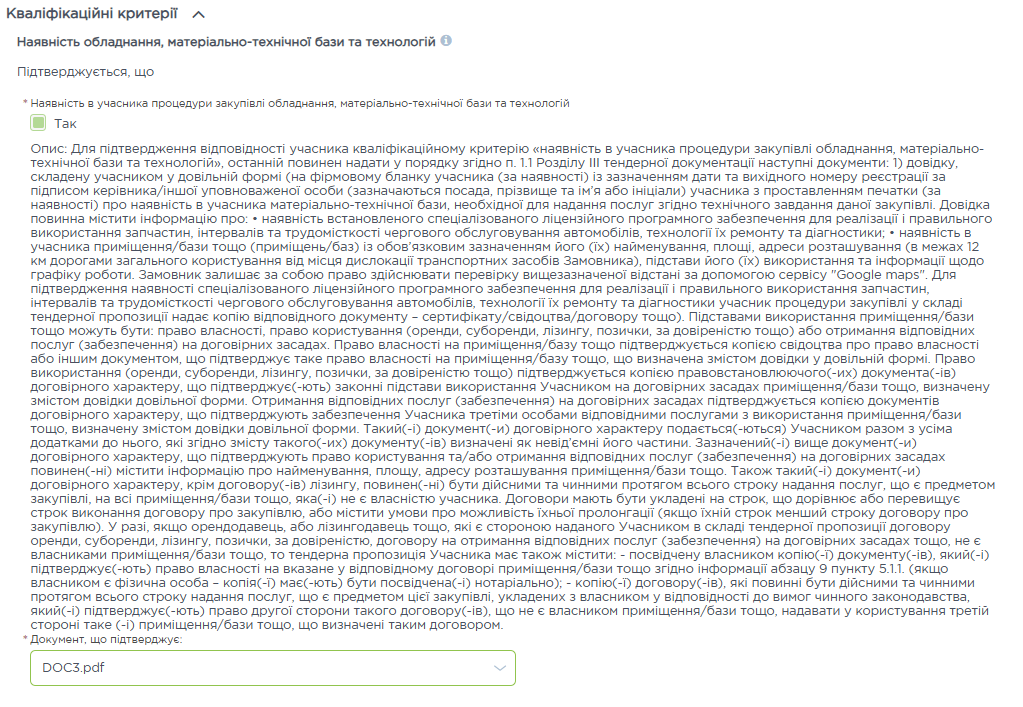 Наразі поширена практика, коли замовники чітко визначають, які саме документи потрібно надати для підтвердження відповідності.