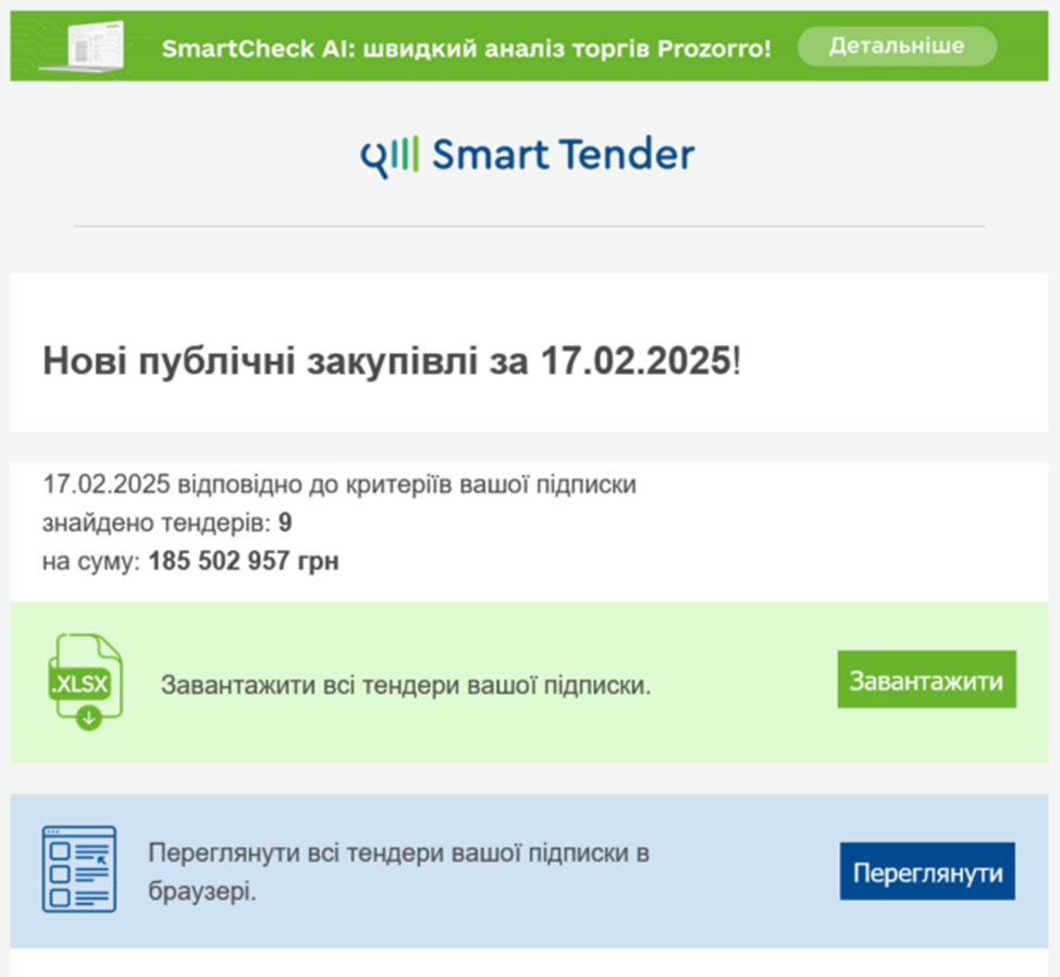 Процес закупівель завжди динамічний, і спеціалісти SmartTender.biz будуть раді допомогти з пошуком та подачею пропозицій. Інший варіант — звернутися до експертів Тендерного агентства Радник.