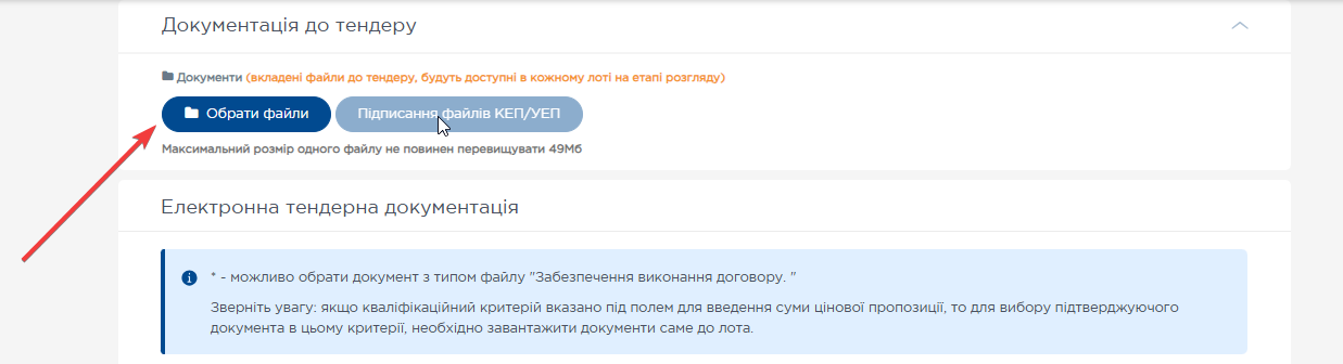 Першим, що бачить учасник, — можливість завантажити документи до тендеру (Рис. 5):