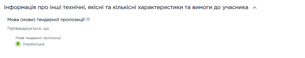 До електронних полів та інших підстав для відмови в участі також належить підтвердження мови тендерної пропозиції (Рис. 9).