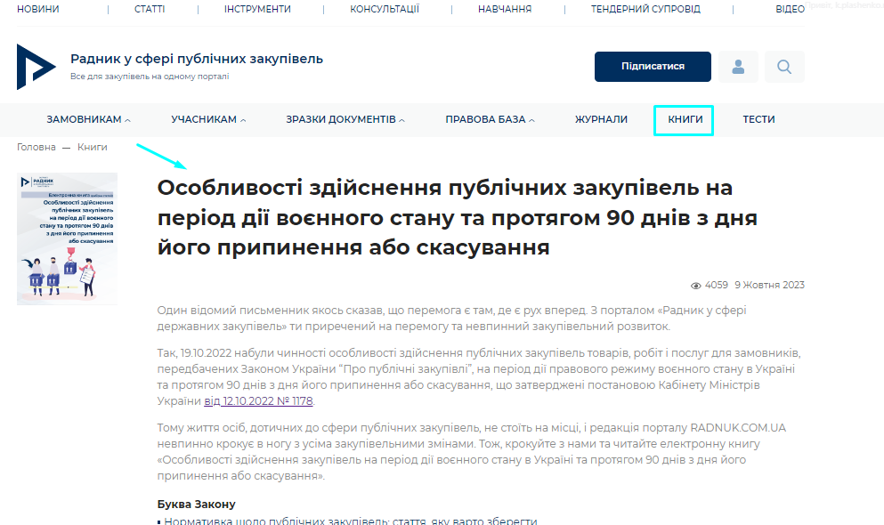 Крокуйте разом з порталом Радник та читайте електронну книгу «Особливості здійснення закупівель на період дії воєнного стану в Україні та протягом 90 днів з дня його припинення або скасування», яка допоможе розібратись з усіма тонкощами Особливостей: