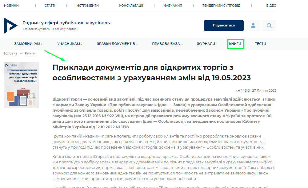 Багато інших прикладів документів для відкритих торгів з особливостями ви зможете знайти у книзі, у якій ми вирішили виокремити зразки документів, які стануть у пригоді під час проведення відкритих торгів, зокрема з урахуванням Особливостей, та участі в них:
