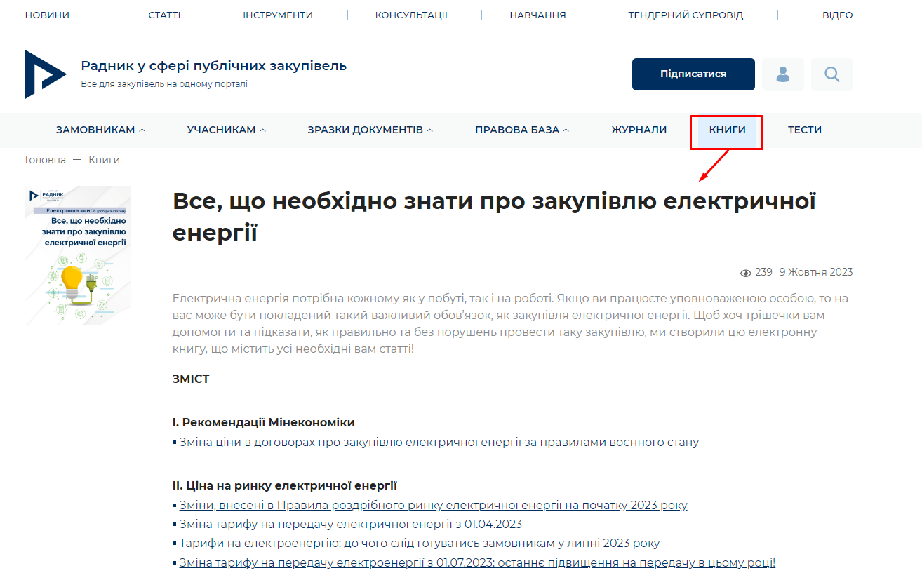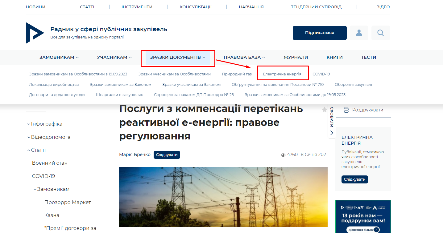 Усі необхідні зразки документів для успішного проведення закупівлі електроенергії ви знайдете на Раднику в розділі «Зразки документів» — «Електрична енергія».