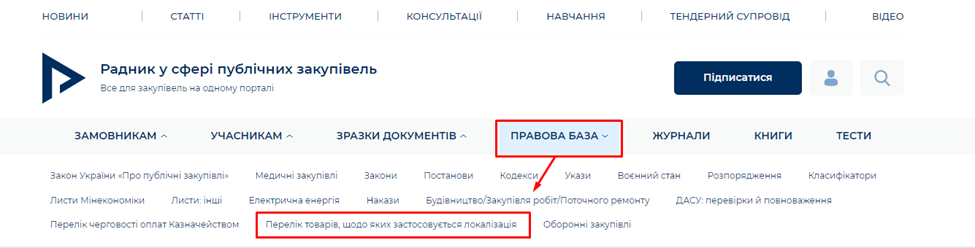 1) замовник здійснює закупівлю товарів, визначених підпунктом 2 цього пункту, виключно якщо їх ступінь локалізації виробництва дорівнює чи перевищує: … .