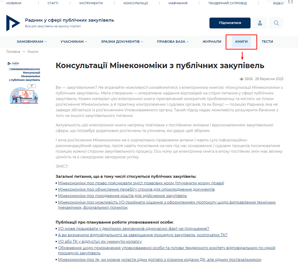 Більше консультацій Мінекономіки ви завжди знайдете в електронній книзі «Консультації Мінекономіки з публічних закупівель» у розділі «Книги»: