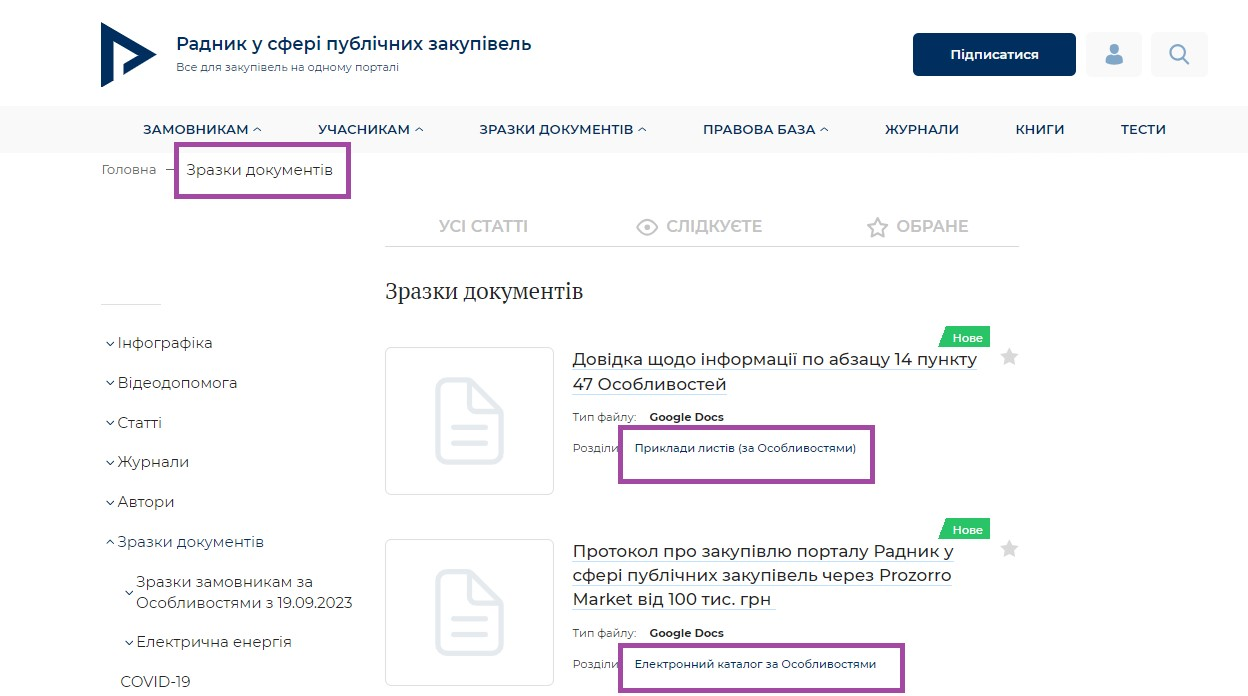 Знайти вказані документи можна у відповідних розділах на порталі: