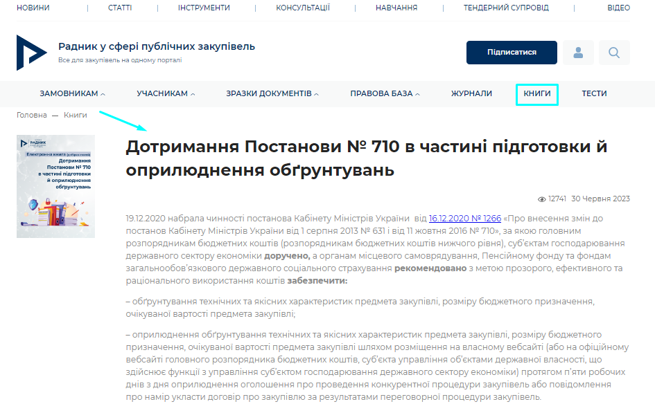 Матеріали, статті та приклади документів на виконання Постанови № 710 зібрані в електронній книзі «Дотримання Постанови № 710 в частині підготовки й оприлюднення обґрунтувань»: